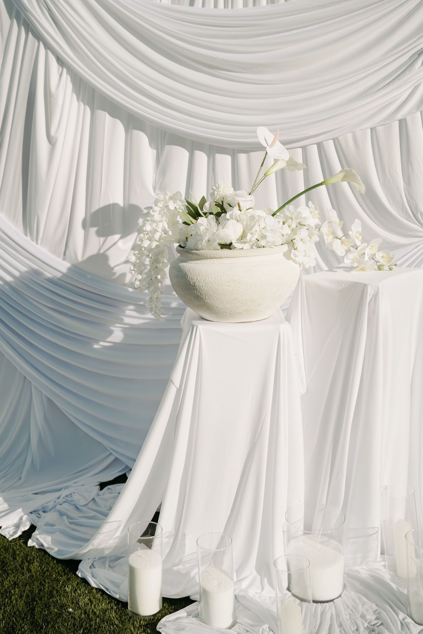 Some wedding days feel like poetry—soft, intentional, and beautifully edited by the couple themselves. This Arizona modern minimal wedding was exactly that. A day shaped by clean whites, structured draping, modern florals, and pockets of greenery that transformed the space into something elevated and timeless.